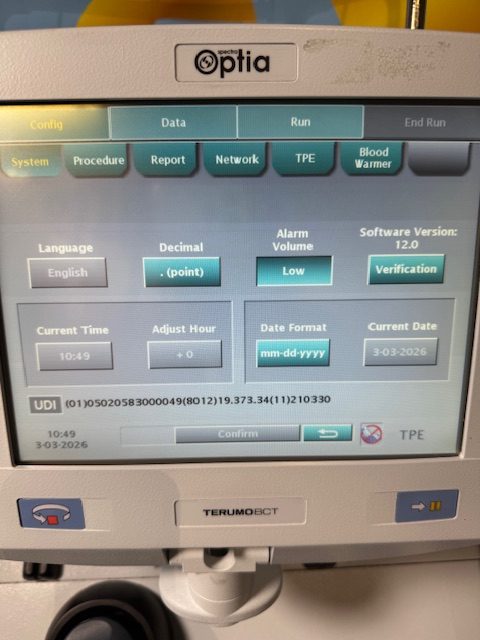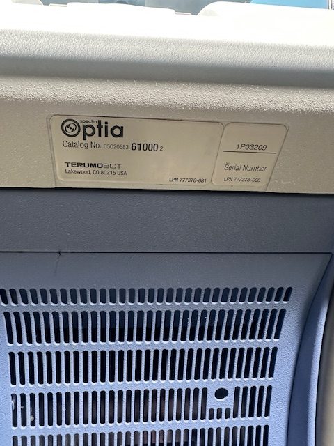 Terumo BCT Spectra Optia Apheresis System DOM: 2015 SN: 1P03209 (C240)